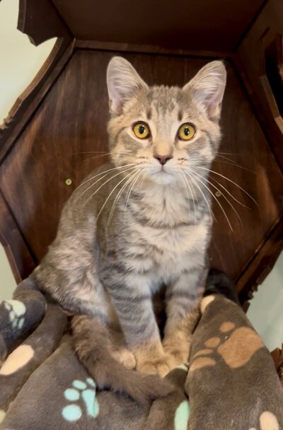 Cady - Cady is the bold adventurer of the crew! She’s curious, playful, and always ready to explore a new corner or chase after her favorite toy. She has plenty of energy for zoomies but also loves winding down with snuggles when the day is done. She’s ready to transfer into your home and your heart.