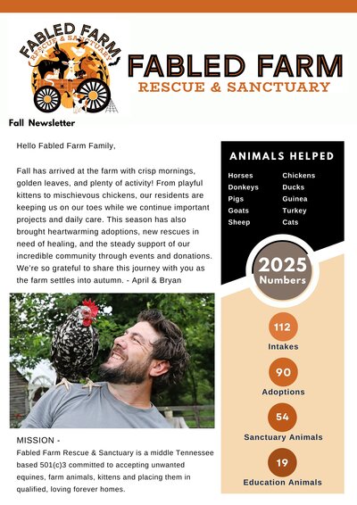 Fabled Farm works closely with reputable rescues, sanctuaries, and animal welfare organizations to help animals in Tennessee and surrounding states.