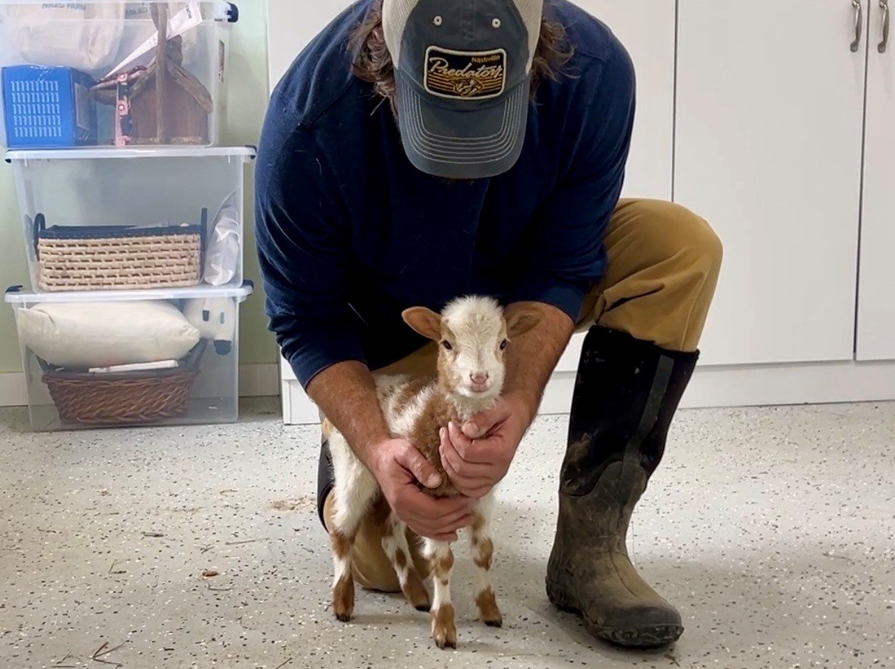 Minie Pearl is four weeks old. A tiny lamb with soft curls, bright ears, and eyes that do not see the world the way they should.