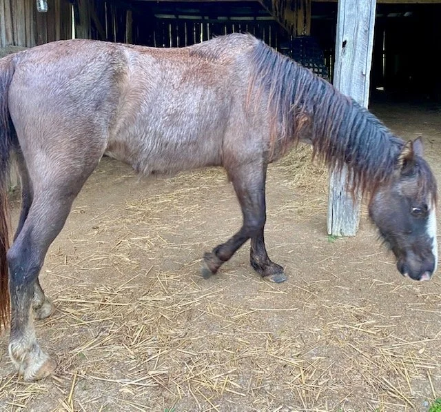 Bitty's hooves were overgrown and twisted under her feet. She was so overweight she could hardly see and could only stand for a minute.